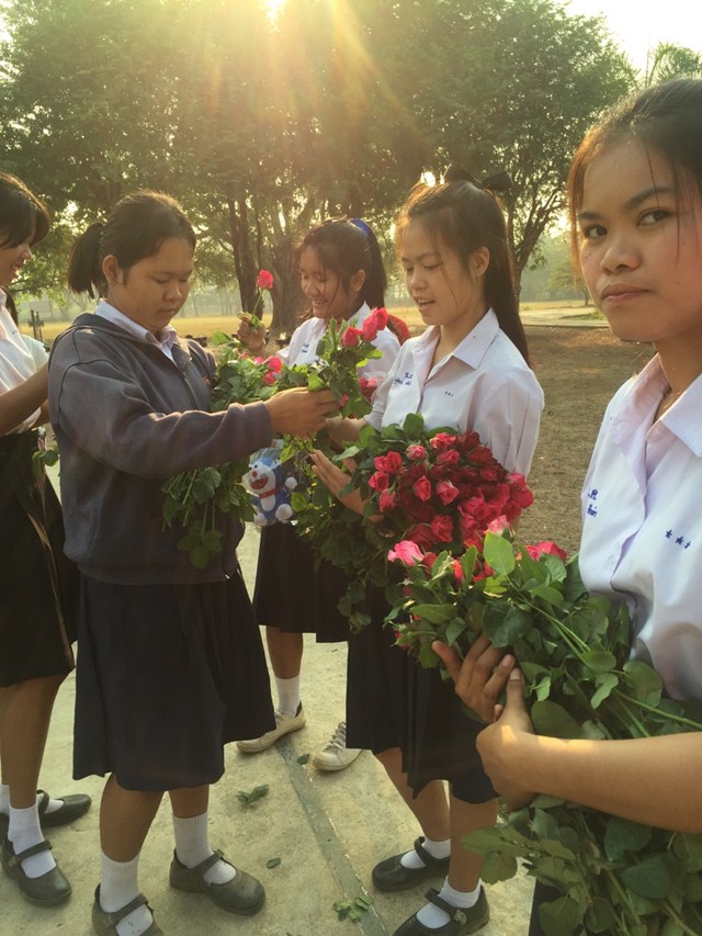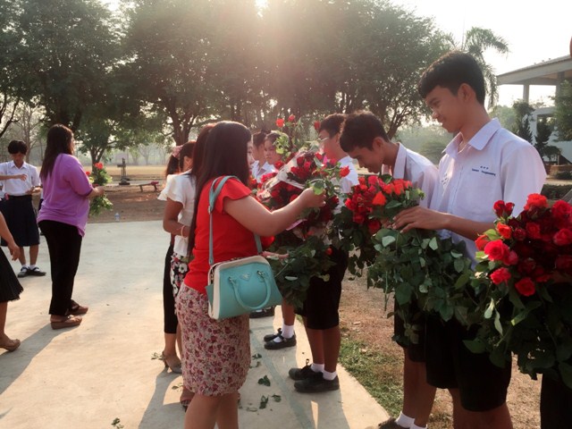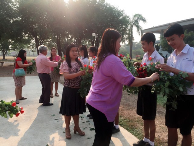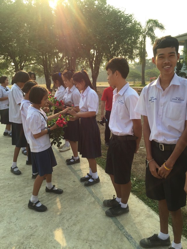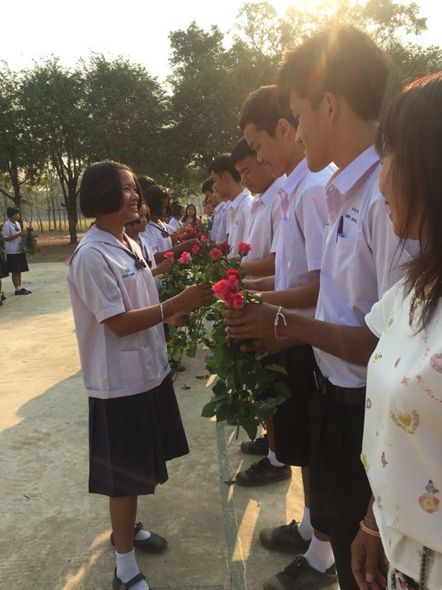 มอบดอกไม้ให้รุ่นพี่ ม.6 ที่กำลังจะศึกษาจบ