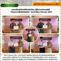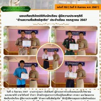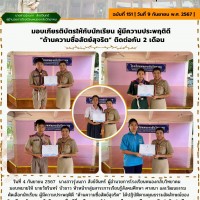 นักเรียน ผู้มีความประพฤติดี “ด้านความซื่อสัตย์สุจริต” ได้ปฏิบัติตามคุณธรรมอัตลักษณ์ของโรงเรียน ด้านความรับผิดชอบ เป็นผู้ที่มาเรียนครบ ไม่เคยขาดเรียน ลา หรือมาสายติดต่อกัน 2 เดือน (กรกฎาคม - สิงหาคม 2567)