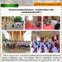 นักเรียนชั้นมัธยมศึกษาปีที่ 3 จัดกิจกรรมถวายเทียนจำนำพรรษา ประจำปีการศึกษา 2567 เนื่องในโอกาส วันอาสาฬหบูชา วันเข้าพรรษา เพื่อถวายแด่พระภิกษุสงฆ์ไว้ใช้ในกิจวัตรต่าง ๆ ตลอดระยะเวลา 3 เดือน และปลูกฝังให้นักเรียนได้เรียนรู้ถึงความสำคัญ ปฏิบัติตนเป็นพุทธศาสน