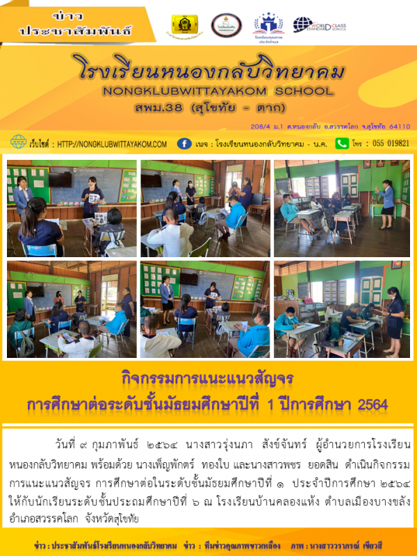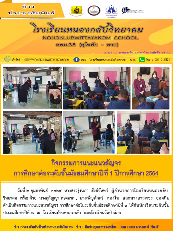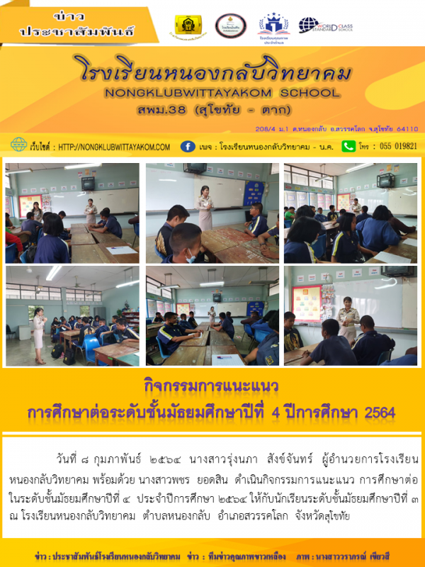แนะแนวการศึกษาต่อชั้นมัธยมศึกษาปีที่ 4 โรงเรียนหนองกลับวิทยาคม